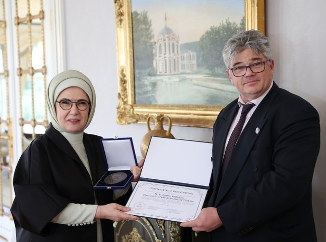 Turkish first woman Emine Erdoğan on Friday obtained the Dr. Beck Apitherapy Award for selling bee merchandise for medicinal functions.