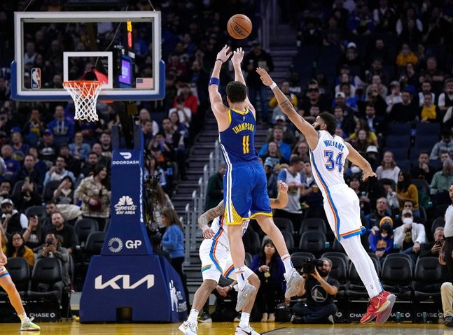Thompson’s 12 threes contributed to Golden State’s workforce complete of 26 in 50 makes an attempt. The Warriors outscored the Thunder 78-33 from deep within the win, which was their second in a row.