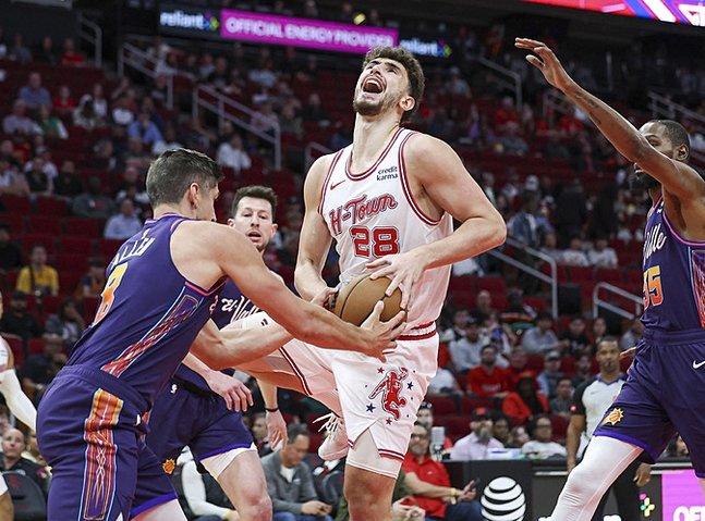 Şengün performed with 45 factors, 16 rebounds and 5 steals, whereas his teammates Jalen Green and Fred VanVleet contributed with 23 and 21 factors, respectively.
