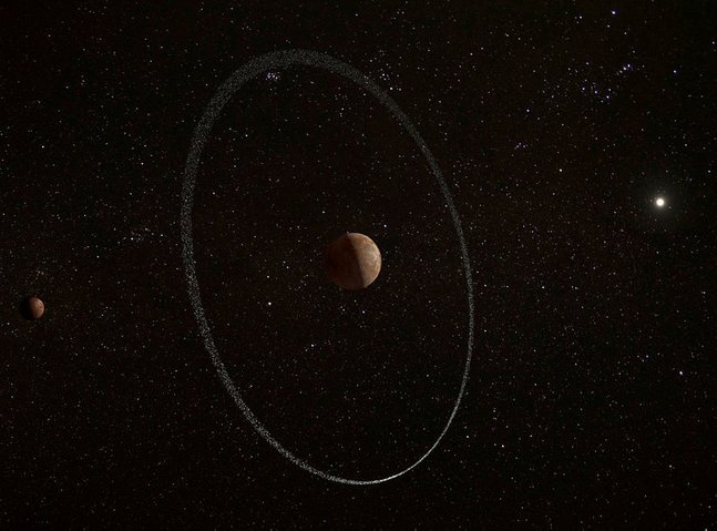 Its diameter of about 700 miles (1,110 km) is a couple of third that of Earth’s moon and half that of the dwarf planet Pluto. It has a small moon known as Weywot, Quaoar’s son in mythology, with a diameter of 105 miles (170 km) orbiting past the ring.