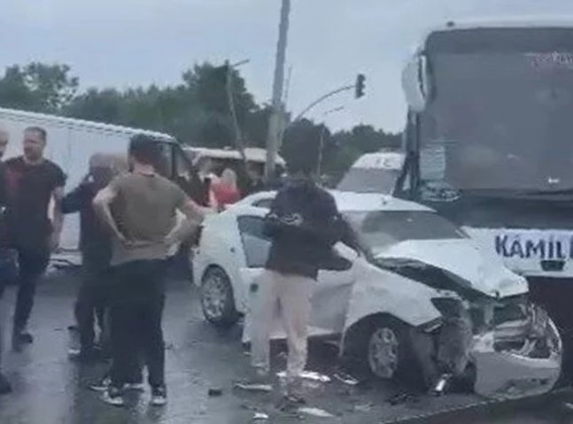 In Arnavutköy, a bus carrying passengers between cities crossed into the alternative lane and crashed into a number of automobiles.