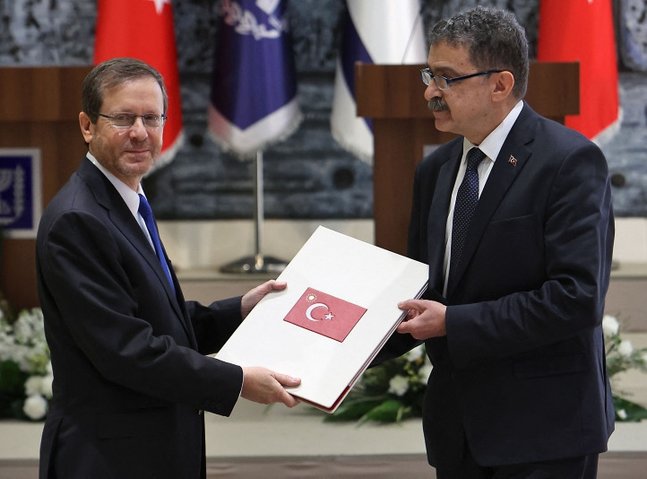 Türkiye‘s new ambassador to Tel Aviv offered his letter of credence to the Israeli president on Wednesday.