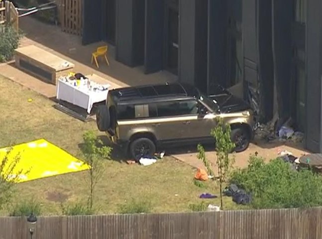 Police prolonged a big cordon across the college and tv footage from overhead confirmed the automotive up in opposition to the wall of the constructing, whereas firefighters and paramedics stood close to a niche within the fencing on the entrance to the location.