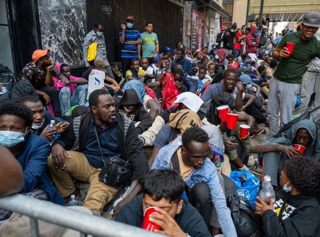 Knees to their chests, dozens of males from nations equivalent to Venezuela, Mali, and Senegal sat on a unclean New York City sidewalk outdoors a Manhattan lodge Tuesday, awaiting asylum processing.