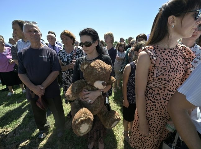 Sobbing members of the family and Kolomyia residents gathered across the coffin, draped in white.