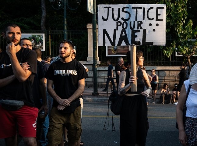 A protest was held Monday in Greece in entrance of the French Embassy within the capital Athens over the police killing of a teen final week in France.